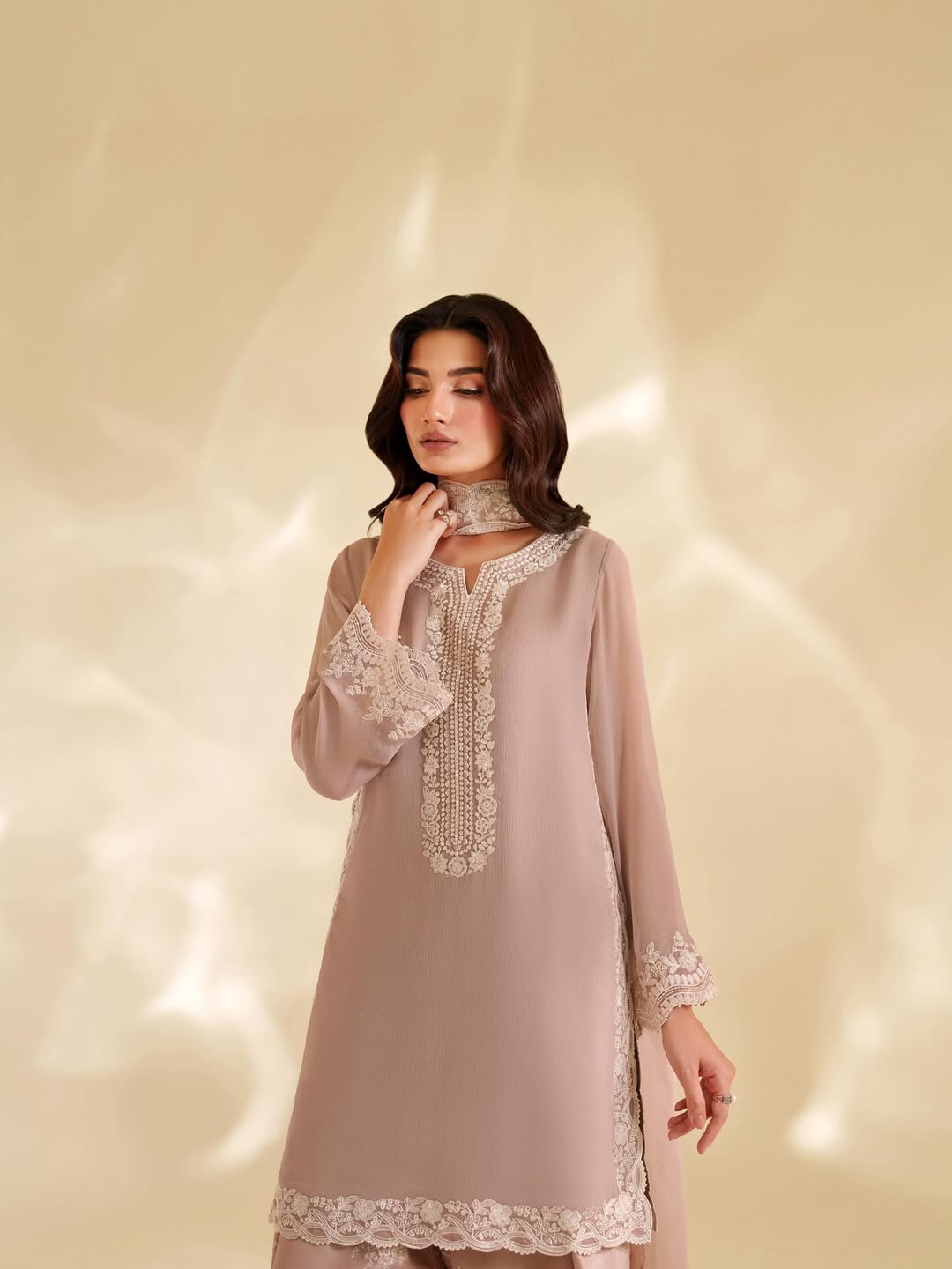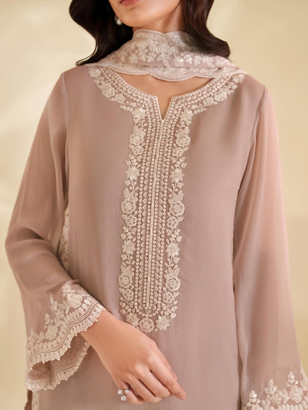 Fabric: Embroidered ChiffonDetails: 3 Piece | Available in Unstitched & Stitched | Code: AW-45 Grace meets sophistication in this embroidered...