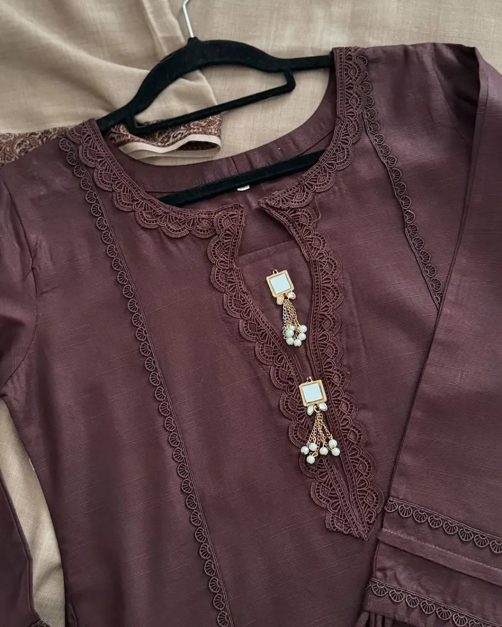 It’s 3 Piece Solid Khaddae Dress, Beautiful Lace work on sleeves or Neck, Premium Quality Shawl is also Included.Khaddar Beautiful...