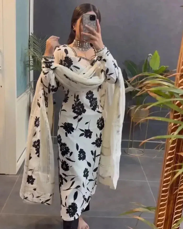 Article Name: Print-709Most Demanding Article of 2024❤️..•Premium quality Lawn 3 pc, digital printed lawn shirt with with neck design, jet...